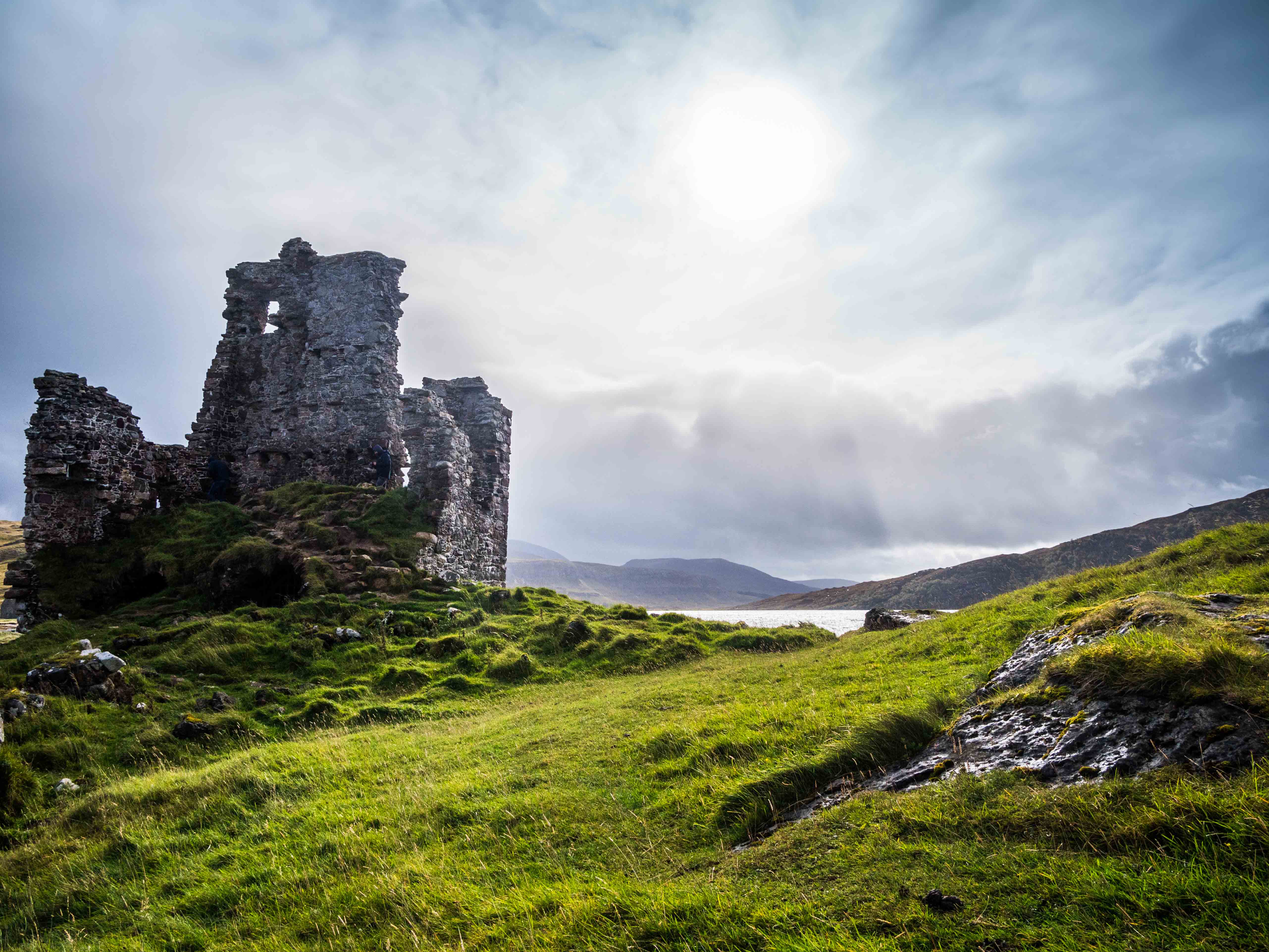 One sight that is hard to miss is Ardvreck Castle, which perches on on the edge of Loch Assynt. Now in ruins, it was once home to the MacLeod family, as was the ruined house which also stands nearby. As you drive along the road to Lochinver, you will also spot several miniature islands, home to Jurassic looking trees!