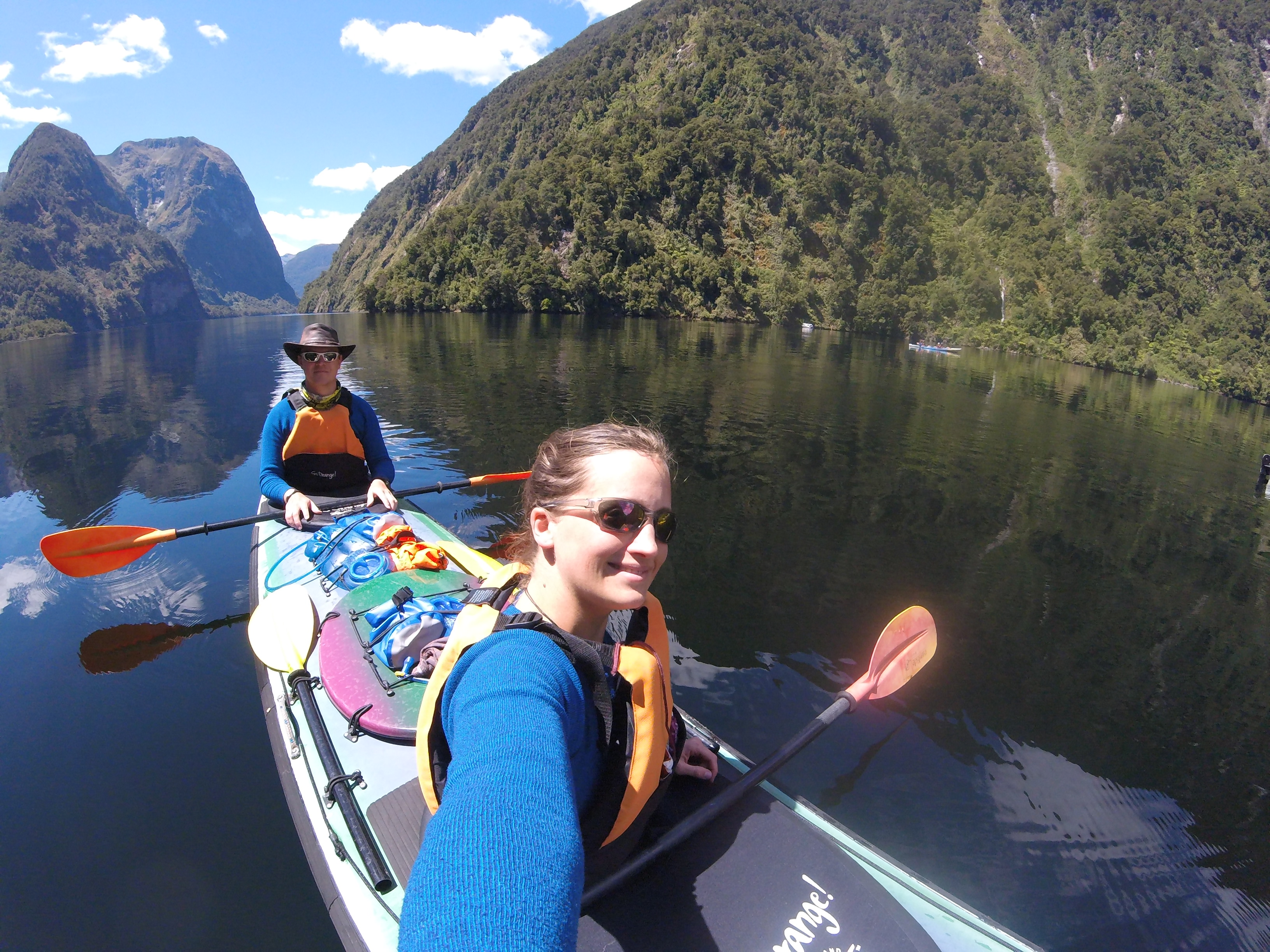 We got a treat on our first day, when following a group of birds on the water they dived instead of flying when we got too close! Closer inspection revealed them to be a raft of little blue penguins – perhaps around eight or so – quite a rare sight to see so many together. We saw very little wildlife, apart from a few fish the second day as we paddled round Elizabeth Island. The water here was clearer, allowing us to glimpse some of the underwater world, and see the cliff faces plummet through the water and on into darkness.