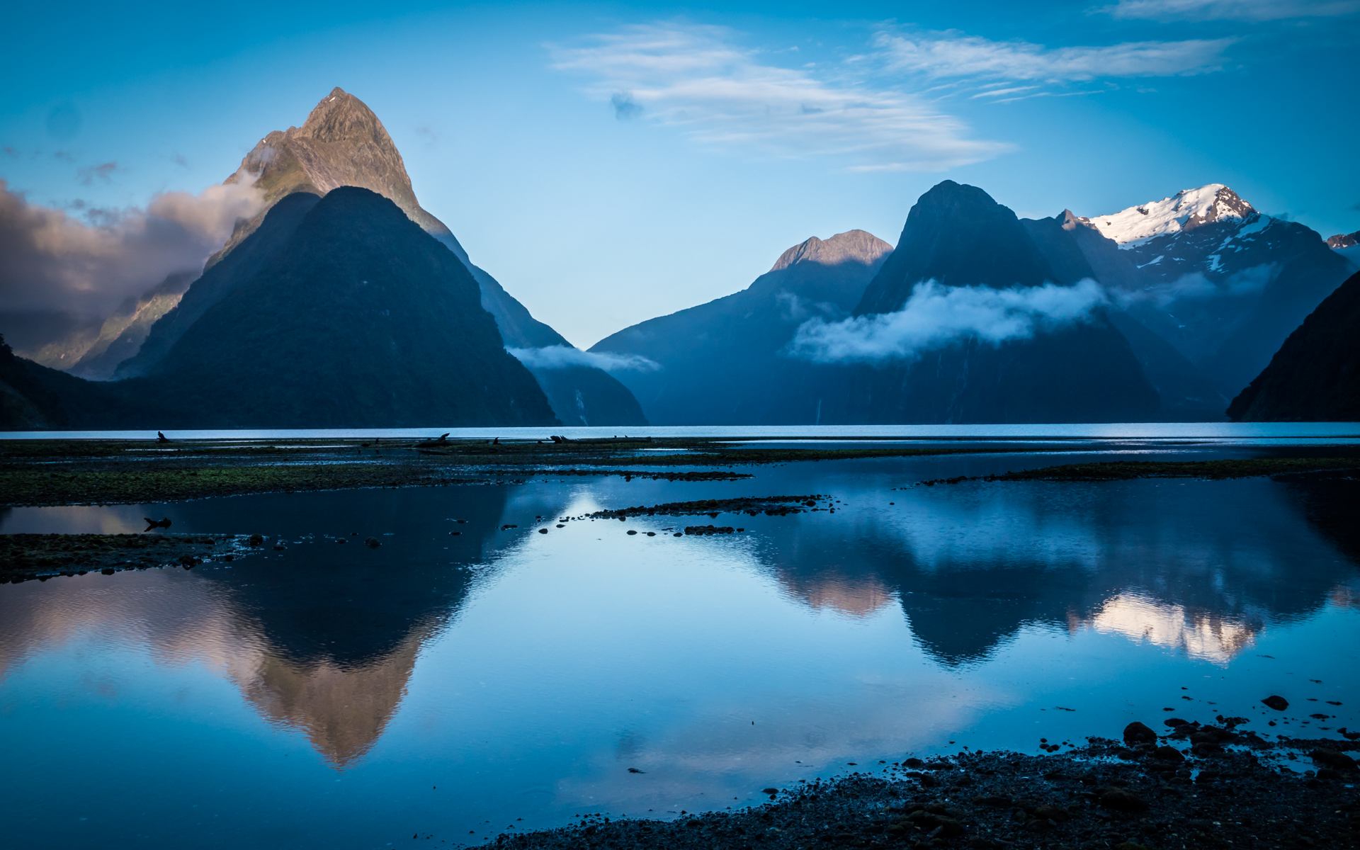 Trees hang precariously from the vertical faces, intertwining their roots with their neighbours in an attempt make up for the poor hold they get from the rock face. When a dry spell precedes heavy rain, trees can pull away from the surface, triggering a landslide and causing whole sections of trees and bushes to plummet to the fiords watery bed, hundreds of metres below. Interestingly the 14 so called “sounds” in the area, are in actual fact fiords – being formed by glaciers and not rivers – but were misnamed by early Welsh and English settlers. The region was renamed fiordland to correct this area, whilst preserving the original names of each Sound.