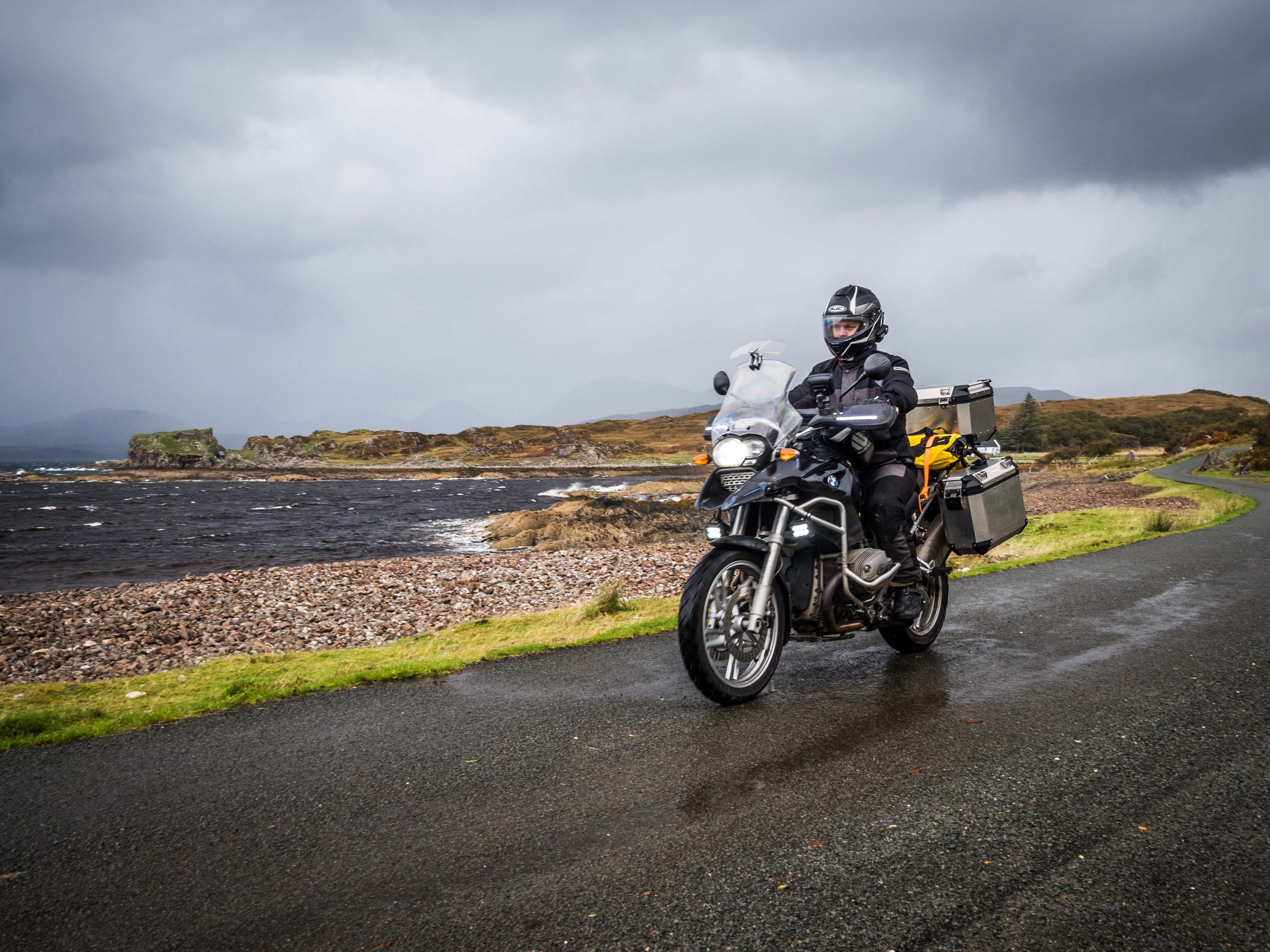 From here, we filled up and bought some food for dinner in Armadale before heading round the road which passes through Ord, on recommendation from a local. Somehow, we managed to miss the ruins of both Armadale Castle and Knock Castle during the ride, which I can only attribute to the poor weather limiting visibility!