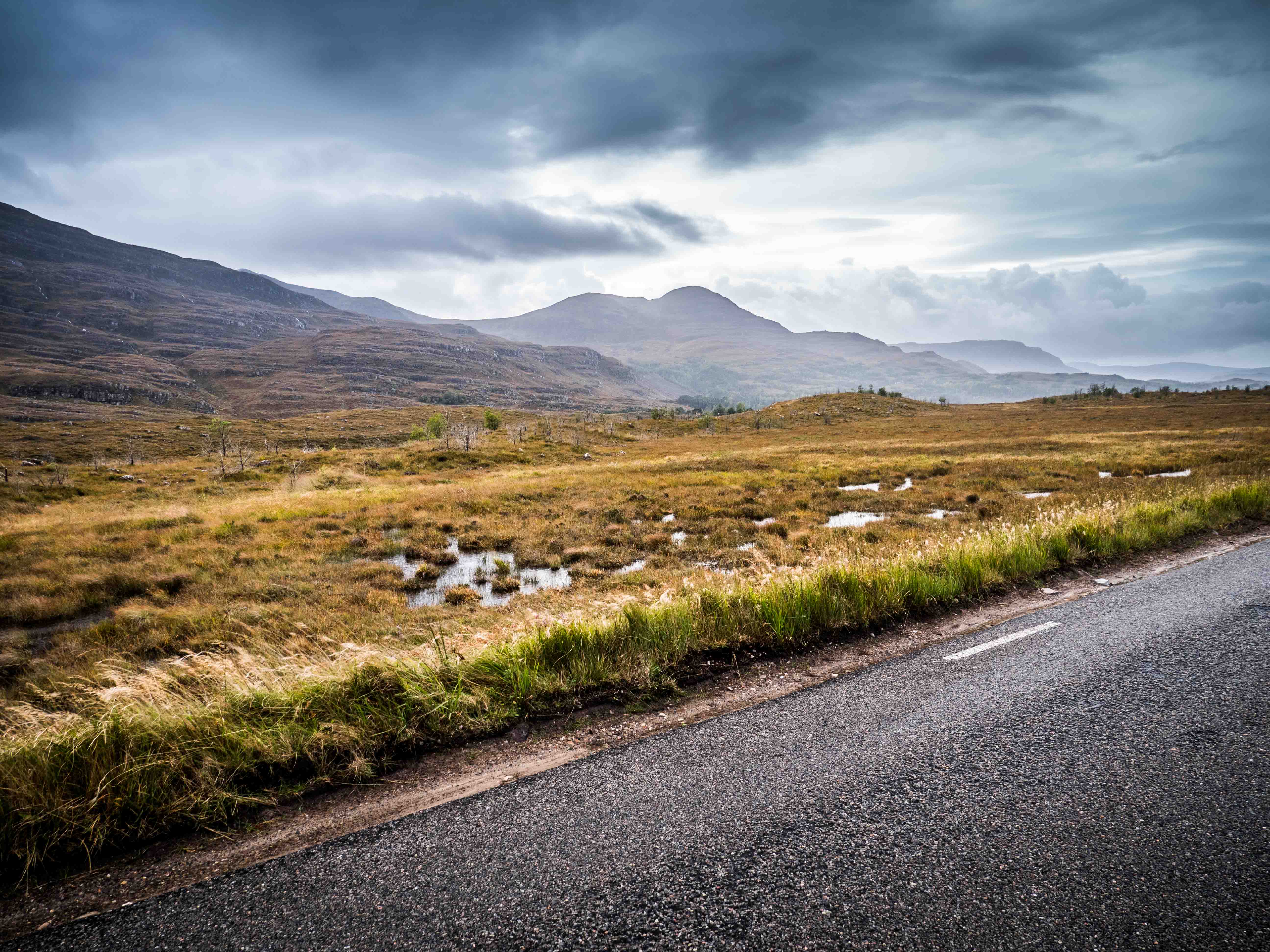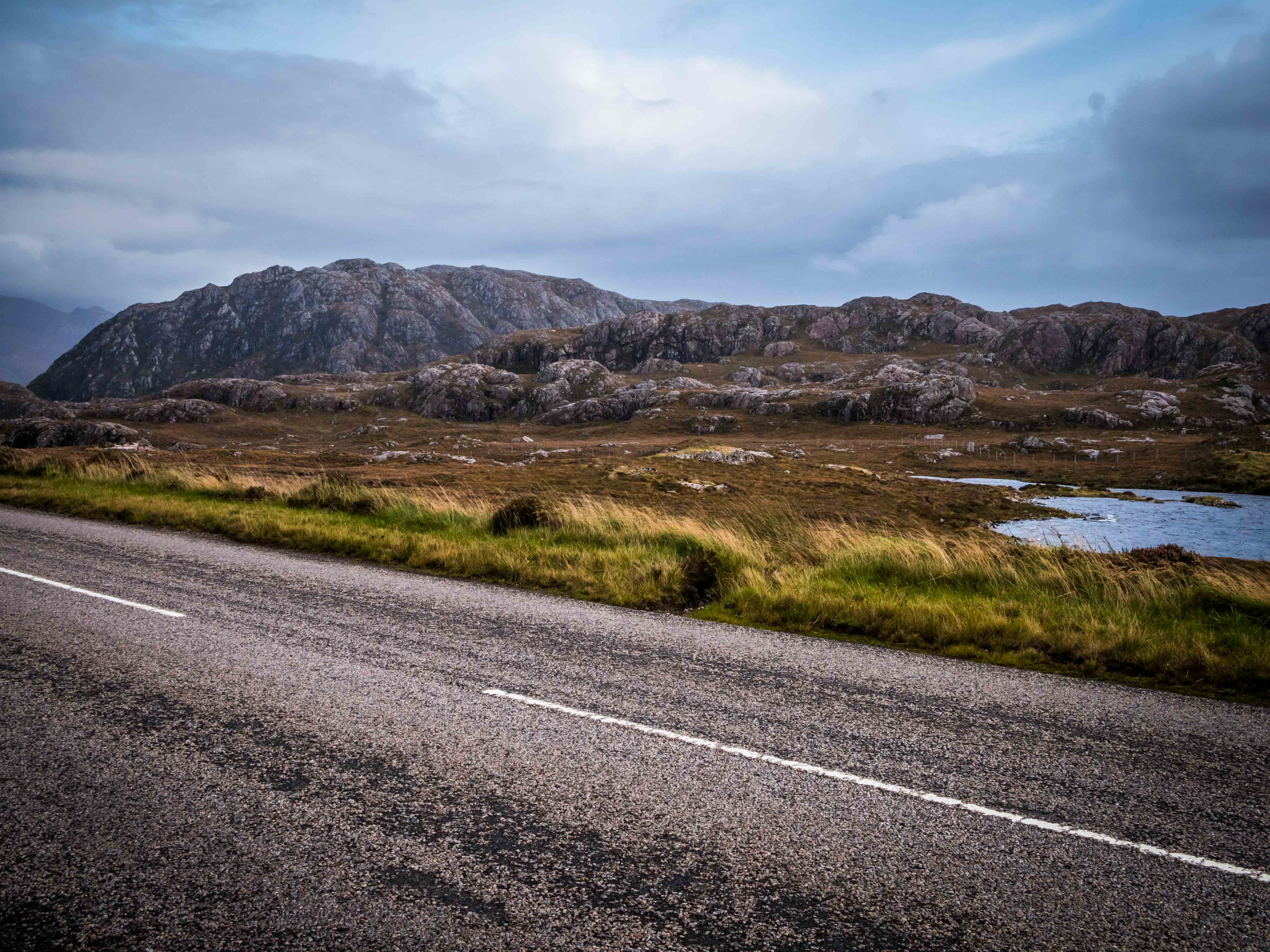 The rain had petered out again, leaving just high winds to contend with as we journeyed on. The roads around here are simply stunning, climbing and descending between peaks and sea level. In between, numerous Lochs add to the beauty of the area. The weather made it all seem quite bleak, but also but the mountains into contrast with one another, producing a layered greyscale effect, which couldn’t really be captured on camera! Whilst the inclement weather didn’t ruin the beauty of the area, it did make it hard to get the camera out as often as we would have liked.