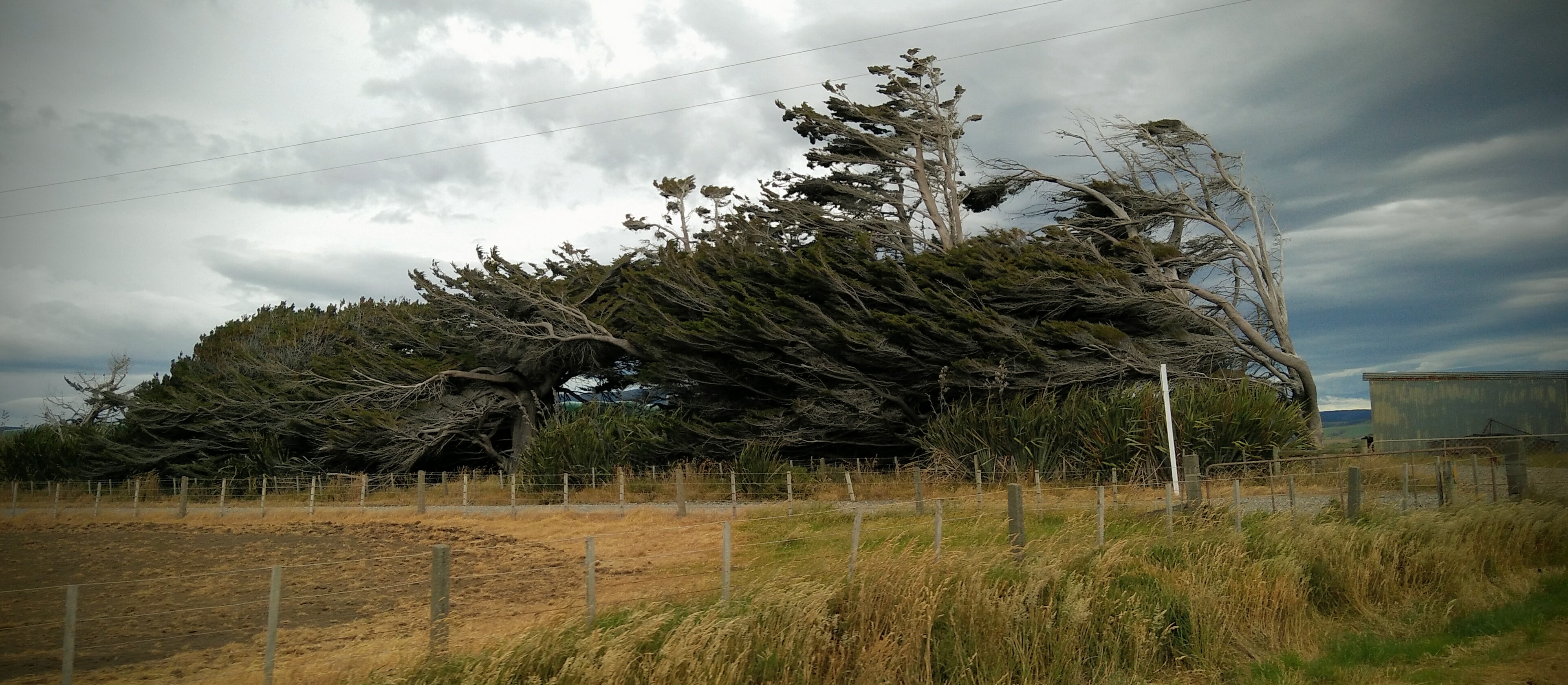 The lighthouse at Waipapa Point makes for some good photos. At low tide, you can explore the rock pools on the shore – just watch out for the big waves! We went on a wet and windy day, the clouds making the scene look very moody. The weather we experienced during our trip through the southern south island explained the number of wind torn trees along the route.