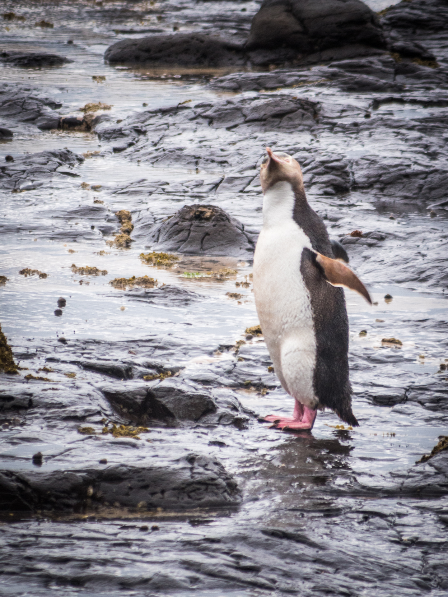 These bays are on either side of a small headland, both are worth a visit. There is a campsite here with large flax growing between sites – which we found to be a useful wind barrier! Curio Bay is home to a petrified forest, which can be explored at low tide. The Bay is also home to the Hoiho, or yellow eyed penguin which is endemic to New Zealand and one of the rarest penguin species in the world. It is worth visiting at dusk to watch the penguins surf back in and waddle to their homes.