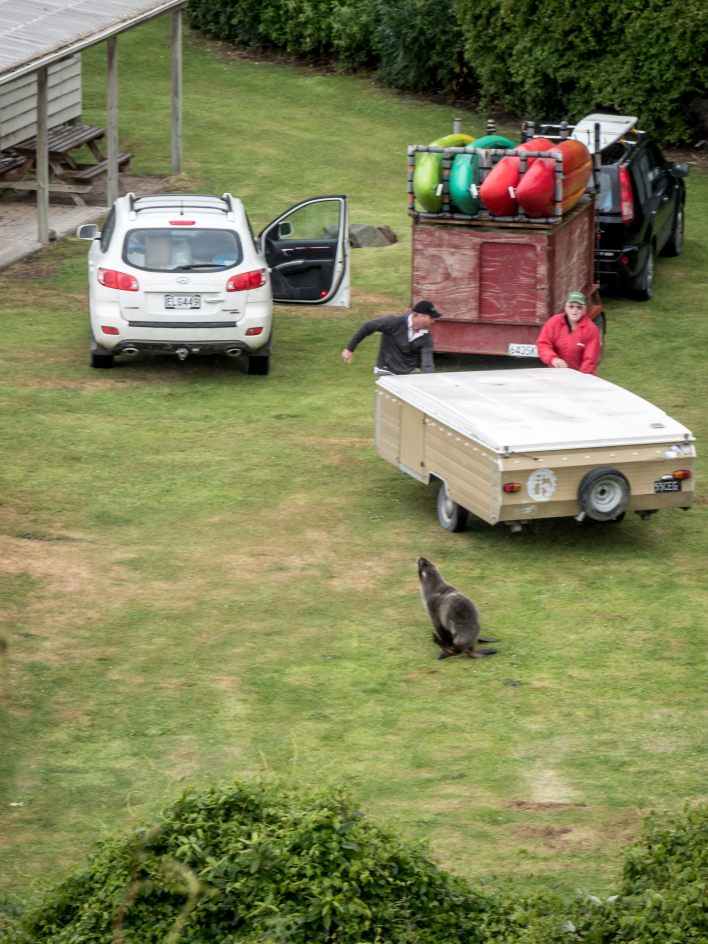 On the other side of the headland, Porpoise Bay is home to a large number of hector dolphins which often swim close to shore. We spotted one whilst we were there – and some lucky swimmers had a brief interaction with it.
