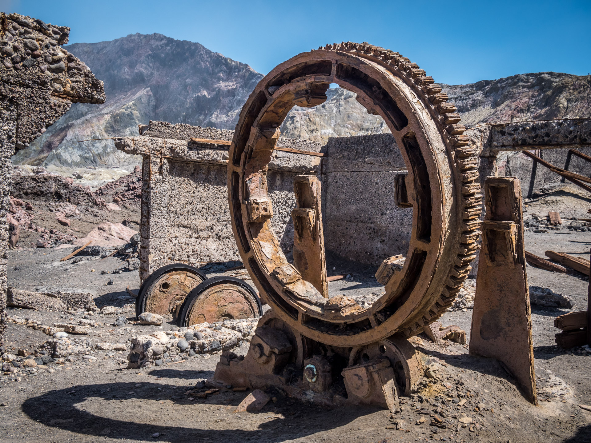 Men worked here for months at a time, processing sulphur from the ground. In those days, Sulphur was important as an antibacterial component in medicines, alongside several other household uses. Later, when there was not enough sulphur, the rocks were ground and crushed to be sold as agricultural fertiliser. The remains of the plant are now being slowly corroded by the sulphuric atmosphere and sea spray. Unlike other countries, who may have deemed this “too dangerous”, we were free to wander as we pleased through the dilapidated factory.