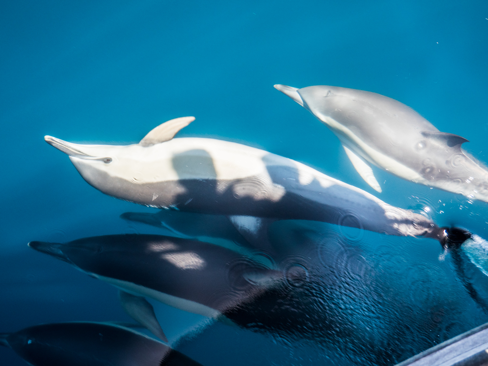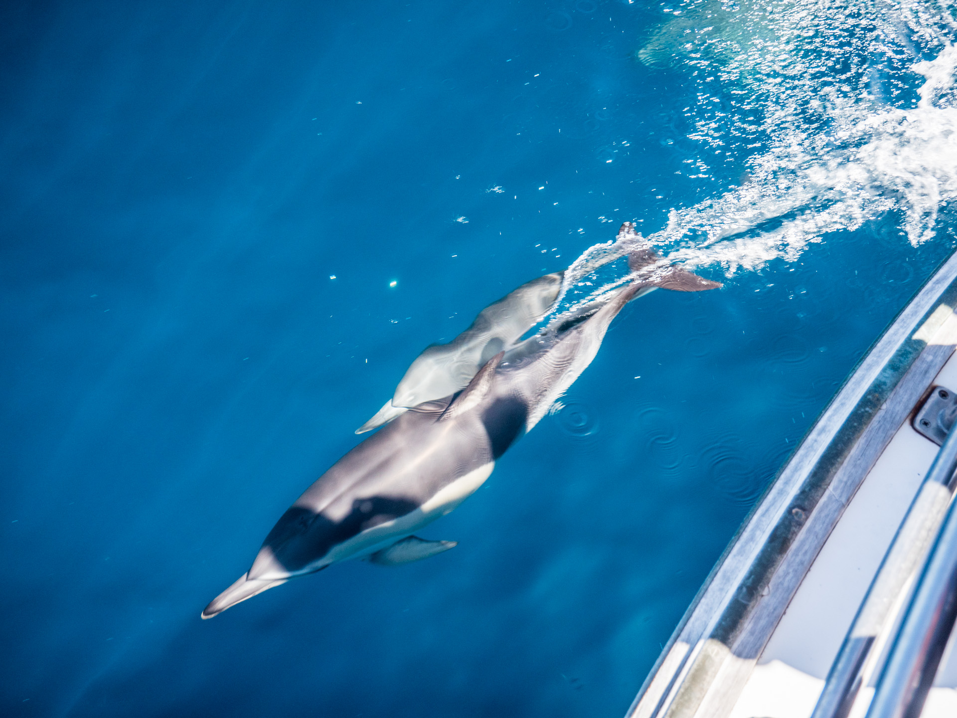 On our return, we headed straight out to sea for the return journey, and were handed lunch boxes and sat back to enjoy the two hour boat trip back to Whakatane. As hoped, we were treated to a pod of common dolphins on the way back which we were able to watch from the boat’s prow. The dolphins swam with us for some time, amusing us with their tricks and ability to ride the bow wave so gracefully. We were treated to a few jumps and tricks, and were able to get really quite close to these amazing creatures. Thankfully, the sea remained calm so returned with settled stomachs – unlike our previous dolphin encounter!